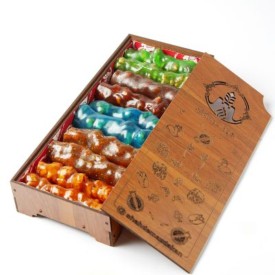 خانهسجوق هاسجوق گردوییسجوق میکس میوه ای باکس چوبی نیم کیلویی میکس میوه ای